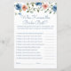 Haz que la fiesta de despedida de soltera sea aún más memorable con este elegante juego "¿Quién conoce mejor a la novia?" con flores azules. Con delicadas flores de acuarela azul y un diseño atemporal, esta tarjeta de juego personalizable añade un momento divertido e interactivo a cualquier celebración de boda. Los invitados responden a una serie de preguntas sobre la novia para ver quién la conoce mejor. ¡El invitado con las respuestas más correctas gana! El diseño limpio es fácil de leer y proporciona mucho espacio para que los invitados escriban sus respuestas. Esta tarjeta de juego también funciona maravillosamente como parte de una mesa de juegos de la fiesta de despedida de soltera, actividad de la mesa de bienvenida o paquete de juegos de boda, lo que la convierte en una adición reflexiva y entretenida a la celebración.