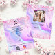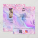 Personalice y agregue su logotipo comercial, nombre, dirección, texto, su propio código QR a su cuenta de Instagram. fondo Rubor rosa, morado, azul, holográfico decorado con confeti. Atrás: agrega una foto y cuenta la historia de tu marca.