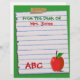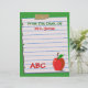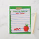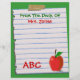 ¡Las 10 mejores vistas de Zazzle con membrete! Personalice este lindo membrete personalizado, "Desde la mesa de", con cualquier nombre en este divertido, desgarrado, papel de cuaderno en línea, grabado en un fondo verde con ABC en letras rojas y un ilustracion de manzanas rojas en el fondo. O, simplemente, deja de lado el texto por completo. Cambiar fácilmente el color de fondo y el estilo y color del texto. Hace un gran regalo de personalizado para los profesores. ¡Personalice algunos hoy! ¡Genial volver a la escuela!