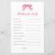 Pink Bow Baby Shower quiere tarjetas de consejo para bebés