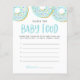 Adivinen el sabor de cada jarra de comida para bebés. ¡La persona con la más correcta gana! | Añadir esta diversión Adivinar la tarjeta de juego Baby Food Flavor a su ducha de bebé. Esta tarjeta de juego trivia con ducha para bebés cuenta con donuts de color azul con salpicaduras de colores. Personalice agregando nombres, eventos y fecha. Este donuts azules Adivinen que el juego de Baby Food es perfecto para cualquier temporada de duchas para bebés o tema.