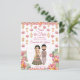 Flores rosadas de loto con linternas marroquíes y matrimonio indio pareja de novias guardando la plantilla de invitación a citas con una foto de parejas en la parte de atrás.