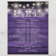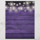 Esta cronología de luces de cadena rústicas para boda se puede personalizar con los detalles de su boda en elegante letra blanca sobre un fondo de paneles de madera morados. Diseñado por Thisisnotme©