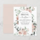 Rosas florales rosados y Eucalyptus Botanical Greenery Watercolor Primavera Boda de verano Ducha de novia Invitaciones al almuerzo - incluye tipografía de escritura hermosa y elegante con flores botánicas tropicales modernas y vegetación para la celebración especial del Día de la Boda.