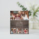 ¡Celebremos a los Navidades! Esta magnífica tarjeta de Navidades cuenta con un fondo de madera vintage con una cubierta de nieve con 4 fotos familiares, una grande en la parte superior y 3 cuadradas en la parte inferior. En el medio de la tarjeta hay un personalizado Navidades saludando en una familia de tipos de letra con letras a mano que dice "Feliz Navidad con amor de" y luego tu apellido y el año.