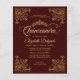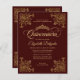 Moderno Clásico Elegante Glam Borgoña Maroon Rojo Marco Dorado Princesa Tiara 15 cumpleaños Invitación Quinceanera