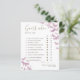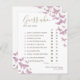 Mariposas moradas y doradas, dibujadas a mano en acuarela y recubiertas digitalmente con oro y chispas (¡esto NO es un Relieve metalizado real!) decoran esta sencilla y elegante tarjeta de juego de personalizado de moda boho "Adivina quién..." que incluye caligrafía de escritura moderna. Personalízalo completamente, con el nombre de la novia y la fecha y cada una de las diez preguntas.