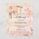 Un fondo de color oro rosa, color rosa oscuro, fino y de aspecto metálico. Decorada con rosa de oro y flores rosadas, rosas, pampas de pasto, mariposas y una cruz dorada. Personalice y agregue un nombre y los detalles.