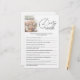Añade risas a tu ducha de novia con este juego de mentes sucias "Off the Market". Un giro descarado que desafía a los invitados, rompe el hielo y hace que celebrar a la futura novia sea aún más memorable. Clave de respuesta: 1. Guante, 2. Zipper, 3. Libro, 4. Puzzle, 5. Popcorn, 6. Vela, 7. Masaje, 8. Crema, 9. Globo, 10. Billar/Piscina, 11. Pasta dental, 12. Bombilla