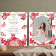Captura la esencia de tu celebración de Quinceañera con nuestras invitaciones fotográficas sobre tiara y mariposas. Crear recuerdos mágicos con diseños florales de color agua rojo entrelazados con confeti brillante, todo ello dentro de un marco geométrico moderno. Estas encantadoras invitaciones marcarán el tono para una celebración inolvidable.