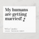 ¡Mis Seres Humanos Se Casan! Deja que tu Mejor Perro anuncie a tu boda con este moderno y simple perro mascota de "Mis Humanos se están casando", salva las tarjetas de cita/invitaciones a la boda. Estas invitaciones al sitio web del boda de código QR son perfectas cuando quieres guardar toda la información del boda en tu sitio web, y no te preocupes por la pérdida de rsvp. Estas divertidas invitaciones a bodas en línea de bodas mascotas son la manera perfecta de responder a sus invitaciones nupciales, hacer cambios en detalles, fechas o el lugar de celebración es tan fácil como algunos golpes clave. Esta boda de perros, salvo la invitación de citas, será un éxito con tu familia y amigos. DERECHOS RESERVADOS © 2020 Judy Burrows, Black Dog Art - Todos los derechos reservados. Mis Seres Humanos Se Casan Con Un Simple Código QR
