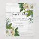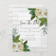 *** TRANSFERIR A TARJETA PLANA PARA MÁS OPCIONES DE TARJETAS/PAPEL/ENVELOPE *** Rosas blancas y hojas verdes ramo de flores (acuarela) papel boda floral. Se puede usar para guardar fechas, invitaciones, rsvp, con campos de texto en ambos lados para agregar información adicional que incluye menú, direcciones, detalles de recepción y lugar, registro de regalos. También puede agregar imágenes como un código de exploración QR, etc.
