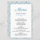 Un diseño refinado enmarcado con un estampado floral clásico de la tela de Jouy azul. La delicada frontera de inspiración vintage añade un encanto atemporal, ideal para celebraciones tradicionales o de temática rural. Personalizable fácil con los detalles de tu evento.