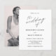 Invitación simple de matrimonio presupuestal con "el boda de" en caligrafía junto con los detalles de su boda en blanco y negro. El trasero tiene tu foto favorita. Un diseño minimalista con tipografía de moda para un toque elegante.