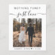 Elegancia económica o invitación boda privada y una invitación informal a la recepción que incluye tu foto y "Nada de amor justo" en una tipografía simple y un guión elegante con toques. En la foto, añada los nombres y la fecha de boda o recepción. En la parte posterior, introduzca la dirección del sitio web de su boda para crear un código QR para que sus invitados puedan escanear en línea a RSVP y obtener detalles del boda y agregar sus nombres en un guión tipo firma. Este papel semibrillante de presupuesto es similar en peso al papel fotográfico. También está disponible una versión más grande del stock de tarjetas 5x7 (envíenos un mensaje para el enlace).