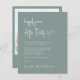 Invitación a la recepción de bodas verde sabio y amigable con el presupuesto que incluye "Feliz eterno después de Fiesta" en un guión blanco de moda, su invitación en tipografía clásica de serif blanca y sus nombres en un guión blanco característico. En la parte posterior, agregue su foto e introduzca la dirección del sitio web de su boda para crear un código QR que sus huéspedes puedan escanear a RSVP en línea y obtener detalles adicionales.
