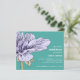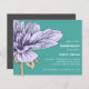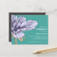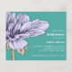 Impresionante y elegante invitación a la ducha de novias, con una magnífica flor de Dahlia en flor en una paleta acuarela de exquisitos matices de marfil y lilac contra un verde esmeralda a la izquierda de la tarjeta. Los detalles de su fiesta se muestran con elegancia a la derecha, en una combinación de moda de letra negrita y serif en color gris clásico. Tarjeta inversa en un color gris contrastante con espacio para texto extra como registro, sitio web, hospedado por u otra información útil. Muy fácil de personalizar usando la plantilla. NOTA: SE INCLUYEN LOS ENVELOPES.