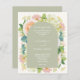Las invitaciones para bodas "todo en uno" incluyen sus detalles en la parte delantera y trasera con letras blancas de moda. Hermosas flores acuáticas - hortensias blancas y verdes, rosas rosas y cremas, margaritas, tallos pequeños y hojas - en la parte delantera con tu información sobre un overlay arqueado. Impreso en papel asequible de 110 libras. **LOS ENVELOPES BLANCOS son un costo adicional. El servicio de diseño en vivo puede ayudarle con el diseño de su diseño o colores si es necesario. COINCIDIENDO con los artículos de nuestra tienda.