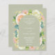 Las invitaciones para bodas "todo en uno" incluyen sus detalles en la parte delantera y trasera con letras blancas de moda. Hermosas flores acuáticas - hortensias blancas y verdes, rosas rosas y cremas, margaritas, tallos pequeños y hojas - en la parte delantera con tu información sobre un overlay arqueado. Impreso en papel asequible de 110 libras. **LOS ENVELOPES BLANCOS son un costo adicional. El servicio de diseño en vivo puede ayudarle con el diseño de su diseño o colores si es necesario. COINCIDIENDO con los artículos de nuestra tienda.