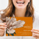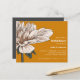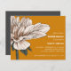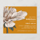 Impresionante y elegante invitación a la ducha de novias, con una magnífica flor de Dahlia en flor en la paleta acuarela de exquisitos matices de marfil y hojas verdes del bosque a la izquierda de la tarjeta. El color de fondo está fijado a un óxido naranja moderno. Los detalles de su fiesta se muestran con elegancia a la derecha, en una combinación de moda de letra negrita y serif en color gris clásico. Tarjeta inversa en un color gris contrastante con espacio para texto extra como registro, sitio web, hospedado por u otra información útil. Muy fácil de personalizar usando la plantilla. NOTA: SE INCLUYEN LOS ENVELOPES.