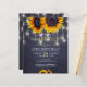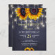 Floral elegante dulce dieciséis invitaciones para fiestas de 16 años presupuesto para una invitación asequible en el pizarrón azul marino oscuro de medianoche con ramos de girasoles dorados amarillos y cuerdas de luces intermitentes.++++ La invitación es apta para fiestas de cumpleaños de moda de girasol al aire libre de otoño.