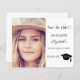 On front: Add your own vertical size photo of the graduate. A chic white background, black text. Templates for a name and date. The name and the text: Save the Date are written with a modern hand lettered style script. With a cap, tassel topper.