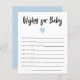 Una simple y moderna ducha de bebé de corazón azul desea una tarjeta para bebés. Los textos son editables. La actividad perfecta para jugar durante la ducha y sin duda será un gran placer.