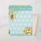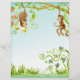 Este Baby Boy Baby Shower Advice para una nueva madre tiene monos adorables y extravagantes que dan la bienvenida a su pequeño nuevo al mundo! El diseño frontal incluye un mono con un plátano colgado de la cola de una rama arbórea con viñas y otro pequeño mono sosteniendo un plátano. El fondo es un gran patrón de puntos de polka azul acuático. En el reverso hay dos monos colgados de una rama cubierta de vid. Los clientes de la ducha para bebés tendrán mucho espacio para escribir su consejo, ya que ambos lados tienen espacio para escribir. Hay una gran variedad de productos disponibles para crear tu propia decoración de ducha, bebe gracias, pegatinas y más.