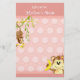 Este Baby Girl Baby Shower Advice para una nueva madre muestra monos adorables y extravagantes dándole la bienvenida a su nueva pequeña al mundo! El diseño frontal incluye un mono con un plátano colgado de la cola de una rama de un árbol con viñas y otro mono pequeño sosteniendo un plátano con una linda flor rosada en su cabello. El fondo es un gran patrón de puntos polka rosa suave. En el reverso hay dos monos colgados de una rama cubierta de vid. Los clientes de la ducha para bebés tendrán mucho espacio para escribir su consejo, ya que ambos lados tienen espacio para escribir. Hay una gran variedad de productos disponibles para crear tu propia decoración de ducha, bebe gracias, pegatinas y más.