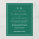 Una sencilla invitación a una boda económica con un diseño moderno y elegante, con su monograma de dos letras en la parte superior y sus detalles rodeados de un delgado borde. Todo el texto está en blanco sobre un fondo verde esmeralda. Las fuentes y los colores de fondo pueden cambiarse a los colores que desee pulsando el botón "personalizar". Estas invitaciones de boda baratas son estupendas para una pareja minimalista.