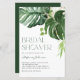 Invite a los huéspedes a su evento con esta invitación a la oficina de personalizable con ducha de novia. Cuenta con ilustraciones acuáticos de hojas de monstera con falsos toques de Relieve metalizado dorado. Personalice esta invitación a la ducha de novia tropical agregando nombre, hora, fecha y otros detalles del evento. Esta ducha de novia verde es perfecta para las duchas de verano.