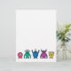 una familia de monstruos alienígenas de dibujos animados / ilustraciones lindas / kawaii en colores arcoíris (rosa, verde, azul, morado y amarillo)