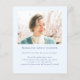 Esta es una elegante y moderna tarjeta funeraria impresa en una hoja de papel amigable para celebrar la vida de tu ser querido. El diseño presenta una hermosa fuente caligráfica y delicados productos botánicos de azul, verde, blanco y plata, con una foto en la parte posterior. Esta invitación puede ser fácilmente personalizada con su propia foto y texto para crear un tributo especial para el funeral de su ser amado, el memorial o la celebración de la vida usando la plantilla proporcionada. Póngase en contacto con el diseñador para cualquier consulta relacionada con este diseño o para cualquier producto que coincida.