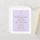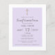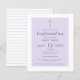 ¿Busca las invitaciones de confirmación perfectas para celebrar su día especial? No busque más que estas impresionantes invitaciones con un fondo moderno de color lila claro y un borde blanco con un efecto de cruz dorada ornamentada. El reverso está adornado con un diseño de franjas que añade un toque de elegancia a su invitación.