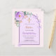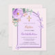 Un fondo rosa rubor con un arco. Decorada con una flor violeta y violeta, una flor rosa, un verde eucalipto de color agua y mariposas. Personalice y agregue un nombre y detalles. Atrás: color de fondo rosa de color de fondo. 1 hoja = 1 borde impreso de invitación al borde.