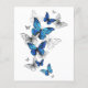 Morfo de las mariposas azules voladoras y mariposas blancas en un fondo abstracto y claro. Morfo. Diseño con morfo de mariposas azules.