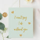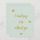 Un color de fondo verde sabio. Guión de estilo manuscrito dorado. Cita: No puedo decir que lo hago sin ti por tus cajas/bolsas de regalo para las damas de honor. Atrás: espacio para que escribas a mano.