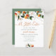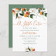 invitación a la ducha de bebé con naranjas de cítricos acuarelas. Los colores y el texto se pueden personalizar.