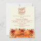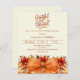 Un color crema suave y beige de fondo. Decorada con un gran arco naranja y flores caídas. Personalice y agregue los detalles del fiesta. Guión de texto: Agradecido y bendecido. 1 hoja = 1 borde impreso de invitación al borde.