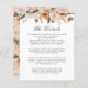 Esta elegante tarjeta de información floral color salvia verde, marfil, naranja y verde musgo presenta el borde botánico de las delicadas flores en la parte superior del texto deseado. Perfecto para aconsejar a los huéspedes sobre alojamiento en el hotel, códigos de grupo, transporte, direcciones, información de recepción de bienvenida y url de su sitio web boda. Indicado para sofisticadas celebraciones de boda o moda en cualquier época del año. Tarjeta invertida a un patrón de flor coincidente en la misma paleta de color de tierra en un fondo rosa rubor