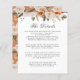 Esta elegante tarjeta de información floral color salvia verde, marfil, naranja y verde musgo presenta el borde botánico de las delicadas flores en la parte superior del texto deseado. Perfecto para aconsejar a los huéspedes sobre alojamiento en el hotel, códigos de grupo, transporte, direcciones, información de recepción de bienvenida y url de su sitio web boda. Indicado para sofisticadas celebraciones de boda o moda en cualquier época del año. Tarjeta invertida a un patrón de flor coincidente en la misma paleta de color de tierra en color naranja cálido.
