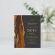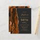 El borde izquierdo de esta elegante y moderna invitación a la fiesta de 50 años cuenta con una acuarela de color naranja quemada bordeada por un purpurina de imitación de oro. El texto del personalizable combina la escritura a mano de color dorado, las fuentes de copperplate y cursiva sobre un fondo negro de pizarra. En el reverso se encuentra un naranja quemado a juego y un diseño de agate dorado.