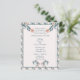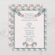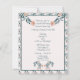 Invitación a una fiesta de Navidades de arte folclórico escandinavos sobre rosa pálido con detalles florales verdes y rosas y verdes. Los detalles están encerrados en un marco verde que tiene flores en las esquinas superiores e inferiores.