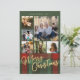 Moderna y elegante lona tartán faux gold Christmas script seis fotos familiares de la selva roja tradicional presupuesto de vacaciones barato con su personalizado texto personalizado en ambos lados.