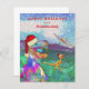 Añade tu apellido personalizado a esta tarjeta de vacaciones de los navidades de los dinosaurios de fu. Tiempo para algunos Navidades de dinosaurios divertidos con esta escena de nieve y una temible y colorida T rex en un sombrero Santa con un velociraptor y un pterodáctilo volador en sombreros Santa. Añada su apellido y desee a sus amigos unas divertidas vacaciones de dinosaurios prehistóricos. Mejor asegúrate de que no eres travieso, pero bueno o que estos aterradores dinosaurios te perseguirán. T Rex, dinosaurios festivos velociraptor y pterodáctilo, la manera perfecta de traer diversión y risas a su familia y amigos en la temporada festiva. Pintura original creada por la artista Catherine Sweetman