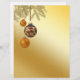Un ilustracion de Navidades noble y elegante: ramas de árboles de navidad doradas con navidades colgantes en un fondo dorado. Este documento de Navidades es perfecto para enviar sus saludos de vacaciones.