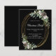 Un fondo de color negro decorado con conos, bayas blancas y verdor. Un falso marco oval de oro. Personalice y agregue los detalles. 1 hoja = 1 borde impreso de invitación al borde.