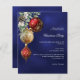 Elegante invitación de la fiesta de Navidades de negocios invita a su equipo a celebrar la temporada de vacaciones con esta elegante y moderna invitación a la fiesta de Navidades. Con un fondo de color azul invernal y desigual, el diseño está bellamente decorado con baubles de color rojo y oro festivo, vegetación y un cono de pino para un toque clásico. Personalízalo con los detalles del evento de tu empresa para crear una invitación profesional y sofisticada, perfecta para tu reunión de vacaciones corporativas. 1 hoja = 1 borde impreso de invitación al borde.