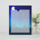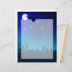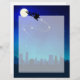 Ilustracion Sleigh de Santa: Un paseo en la noche por el horizonte de una ciudad con el cielo nocturno y la luna brillante y las estrellas en el fondo.