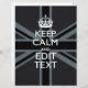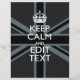 Tu "Keep Calm" personalizado que dice sobre una negrita negra en la decoración de jack de unión negra. Un estilo "Keep Calm" personalizado que dice sobre un regalo amable. Intenta con humor o capricho con tus palabras creativas en dos líneas editables de texto. Recuerde usar las letras CAPITAL para obtener los mejores resultados. Utilice el vínculo "Preguntar a este diseñador" para contactarnos con sus solicitudes de diseño especiales o para obtener ayuda con todas sus necesidades de personalización.